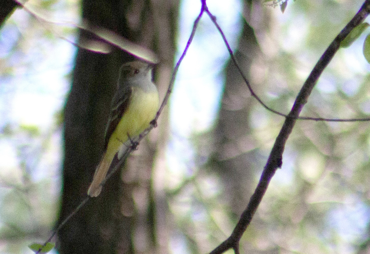 There are two challenges to spotting a Great Crested Flycatcher: first, they move quick and are hard to find; second, when you see one, you have trouble figuring out which kind of flycatcher it is.